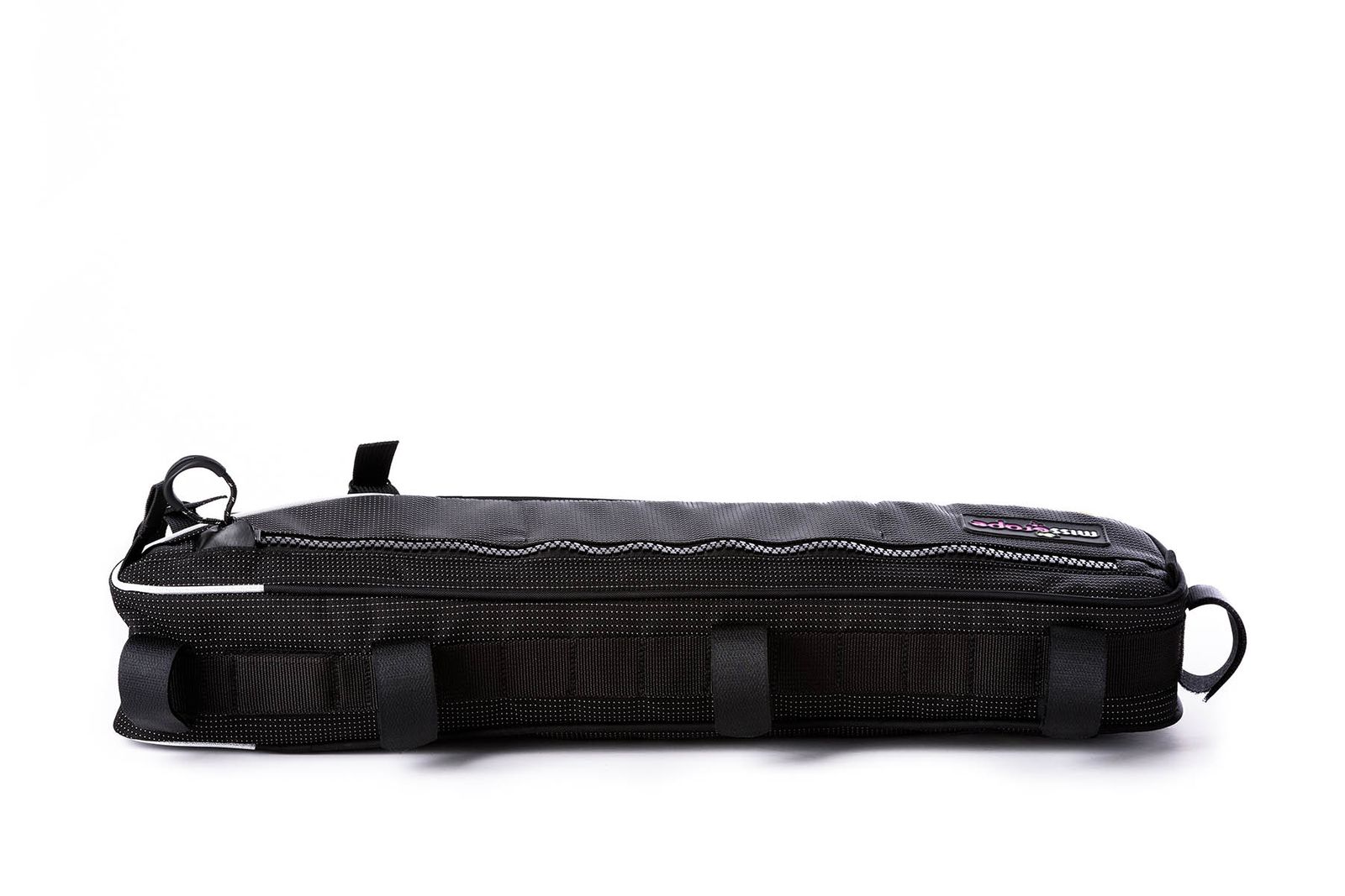 This choice makes the product more versatile, allowing the velcro straps to be positioned at its ideal point in order to keep the bag open to its full load volume even if it is fixed to narrow tube diameters. The velcro straps can also be replaced once worn out.
